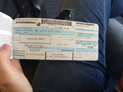 Lennujaamas andsin oma kohvri ära, see läks otse Berliini. Töötaja andis mulle ka lennupileti, küll aga ei saanud ta mulle teha check-in'i järgmiseks lennuks (Chicago-Berliin). See oli keeruline, aga ühesõnaga mul olid lennupiletid ostetud airBerlinilt, aga see lend oli American Airlines'i kaudu.